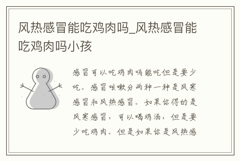 風熱感冒能吃雞肉嗎_風熱感冒能吃雞肉嗎小孩