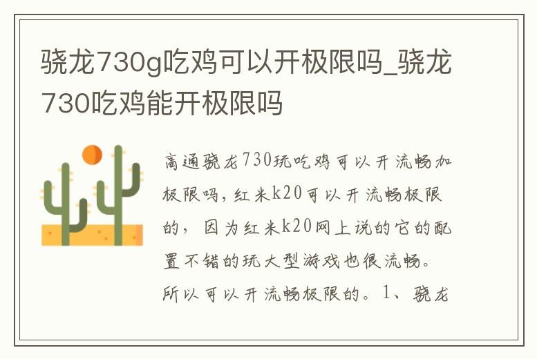 驍龍730g吃雞可以開極限嗎_驍龍730吃雞能開極限嗎