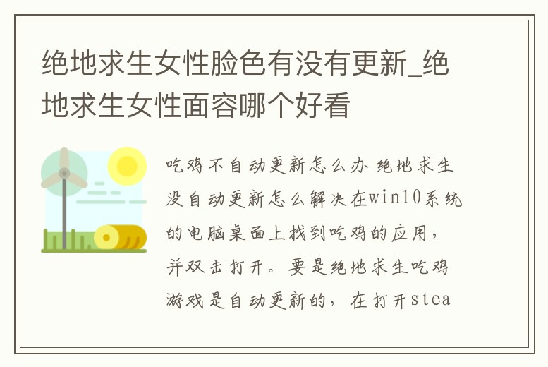 絕地求生女性臉色有沒有更新_絕地求生女性面容哪個好看