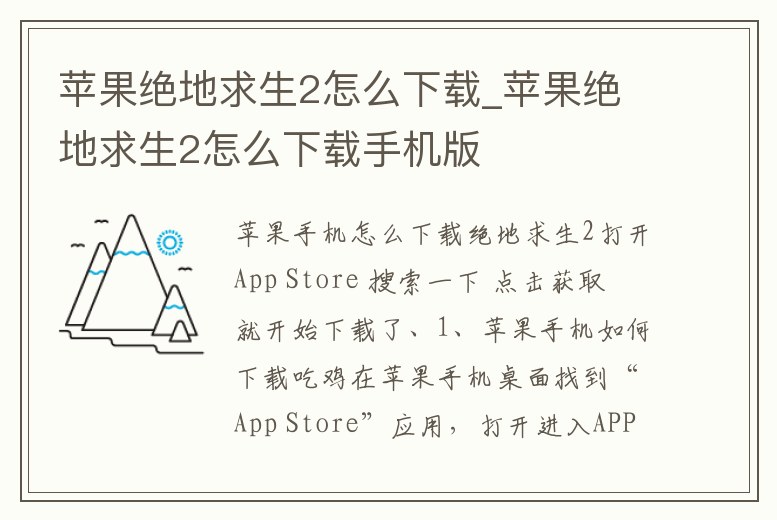 蘋果絕地求生2怎么下載_蘋果絕地求生2怎么下載手機(jī)版