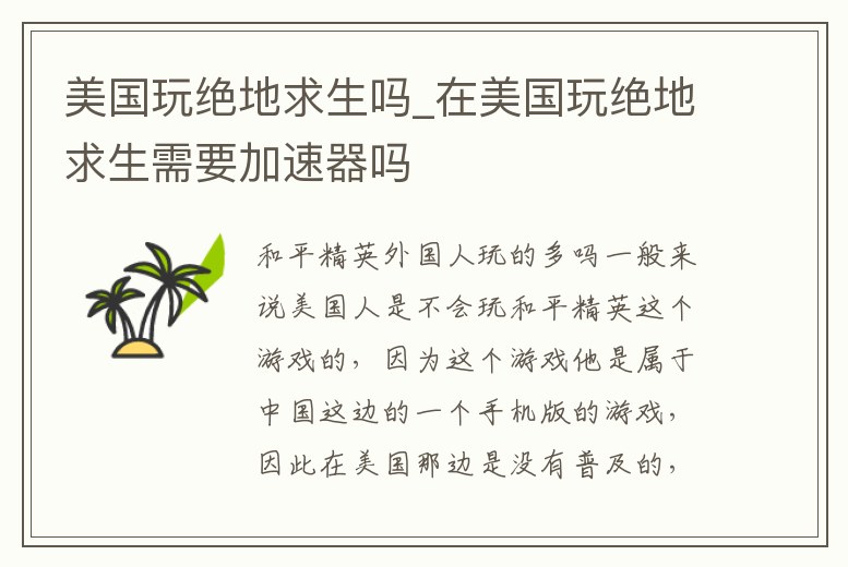 美國玩絕地求生嗎_在美國玩絕地求生需要加速器嗎