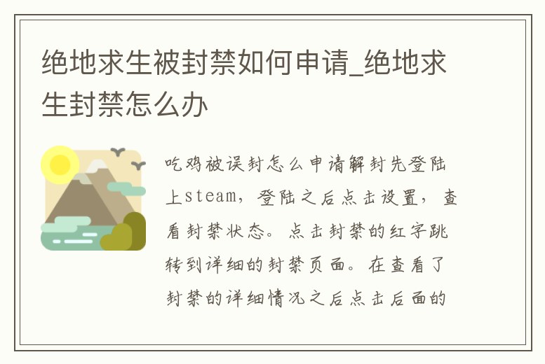 - 絕地求生被封禁如何申請(qǐng)_絕地求生封禁怎么辦