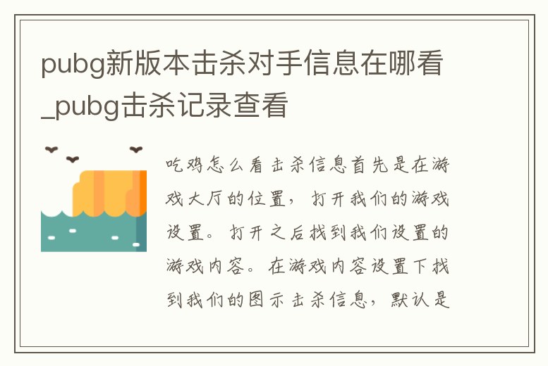 pubg新版本擊殺對手信息在哪看_pubg擊殺記錄查看