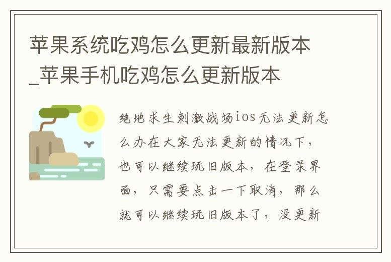 蘋果系統(tǒng)吃雞怎么更新最新版本_蘋果手機吃雞怎么更新版本