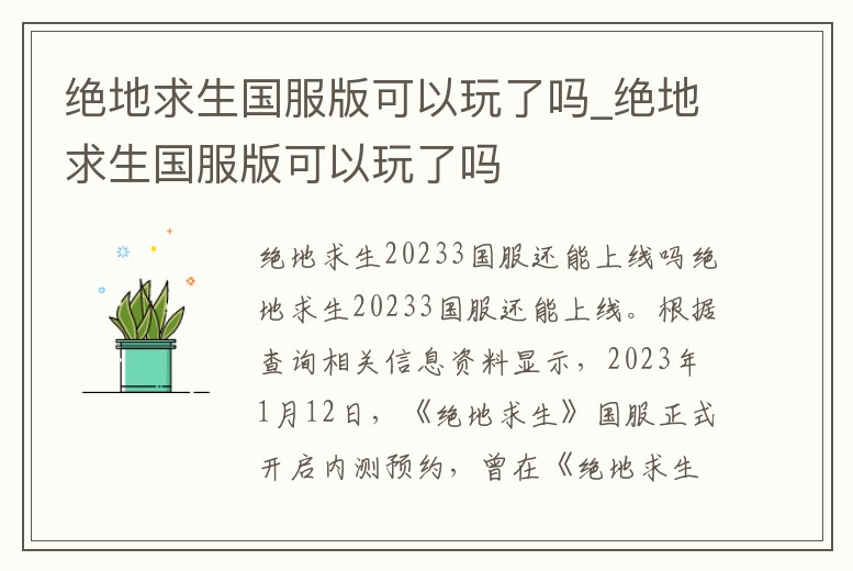 1、絕地求生國服可以玩了嗎