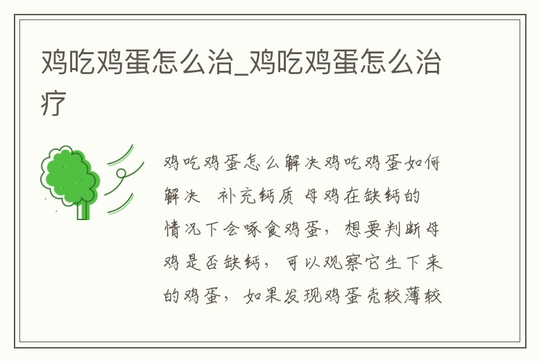 雞吃雞蛋怎么治_雞吃雞蛋怎么治療