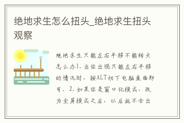 絕地求生怎么扭頭_絕地求生扭頭觀察