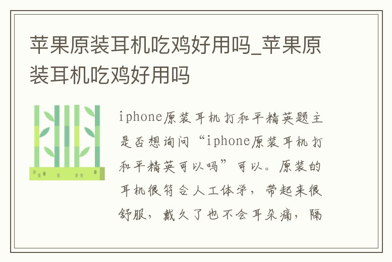 蘋果原裝耳機吃雞好用嗎_蘋果原裝耳機吃雞好用嗎