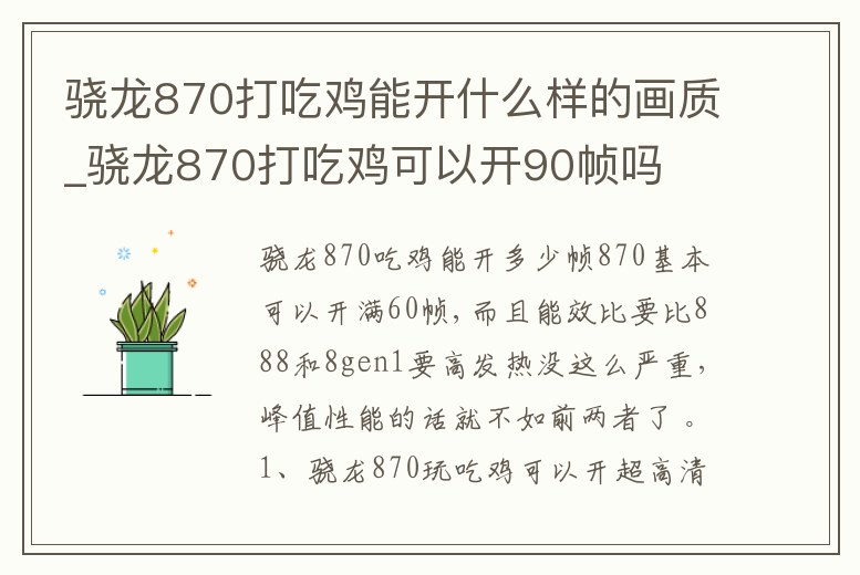 驍龍870打吃雞能開什么樣的畫質_驍龍870打吃雞可以開90幀嗎