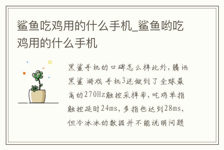 鯊魚吃雞用的什么手機_鯊魚喲吃雞用的什么手機