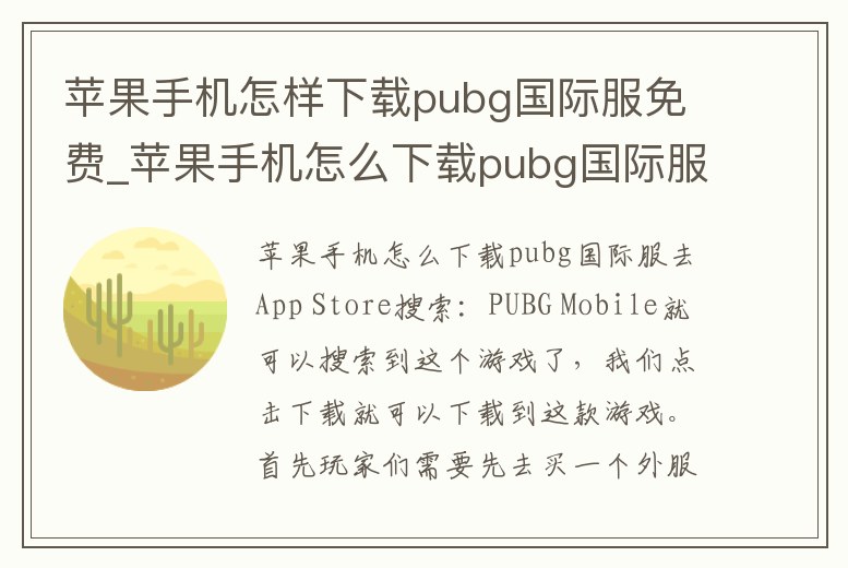 蘋果手機怎樣下載pubg國際服免費_蘋果手機怎么下載pubg國際服手游