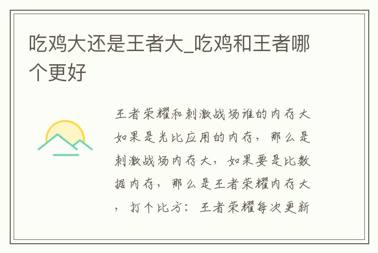 網友分享:吃雞和王者榮耀都是騰訊引以為傲的游戲,但是正因為游戲的豐富性,所以導致需要的內存也很多,其實王者和吃雞的內存占據量差不多,都非常大,要是說誰更大的話,那就是王者榮耀了,一個2.6G,一個2.3G,實際上也差不多。