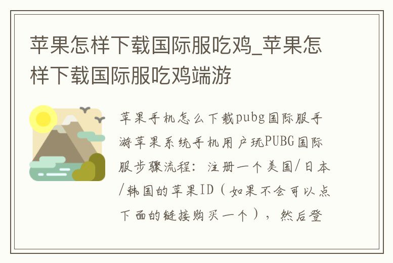 蘋果怎樣下載國際服吃雞_蘋果怎樣下載國際服吃雞端游