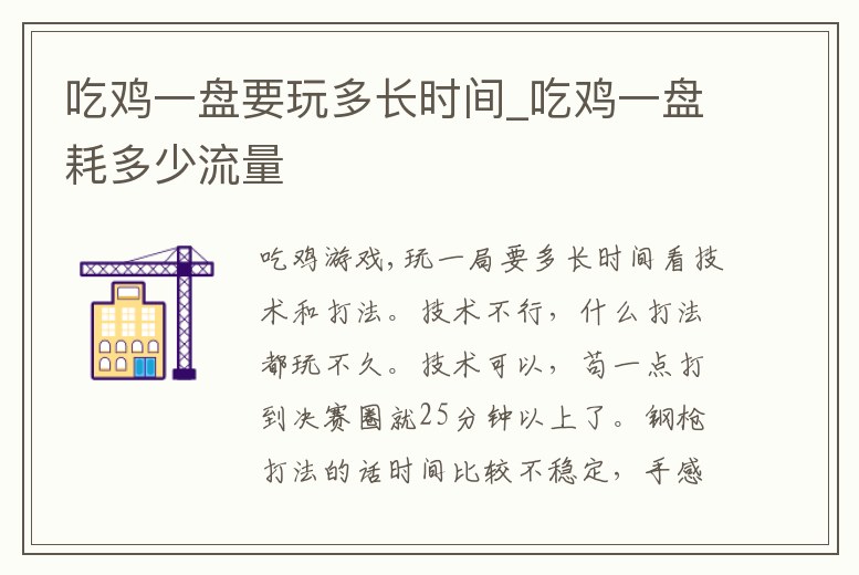 吃雞一盤要玩多長時間_吃雞一盤耗多少流量