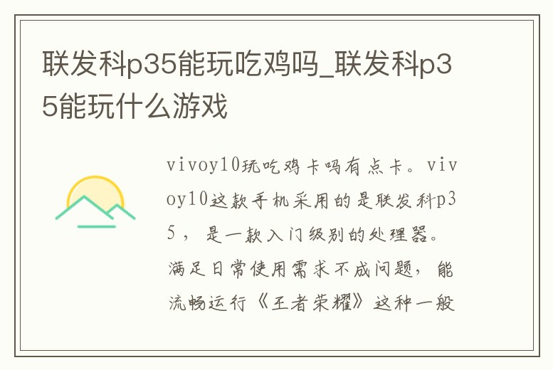 聯發科p35能玩吃雞嗎_聯發科p35能玩什么游戲