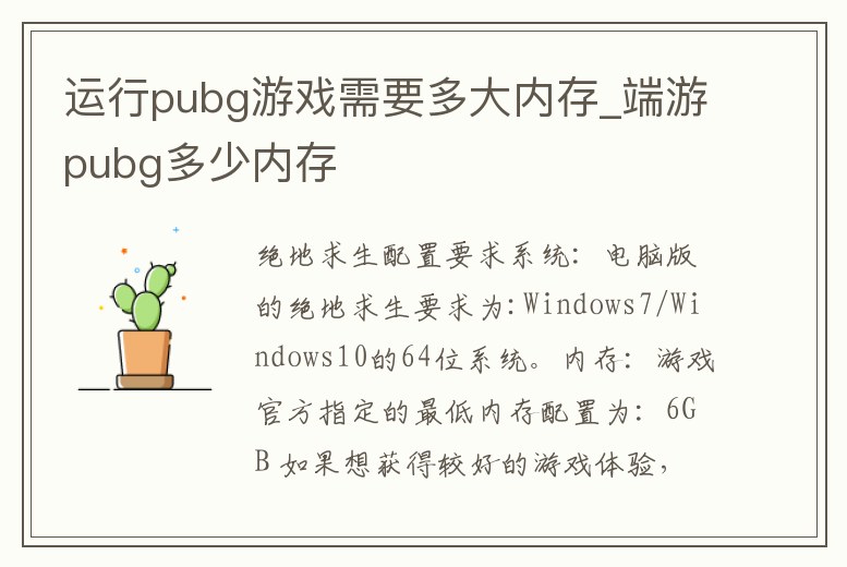 運行pubg游戲需要多大內存_端游pubg多少內存