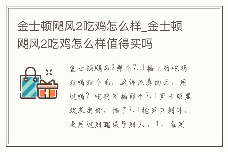 金士頓颶風2那個7.1插上對吃雞好嗎