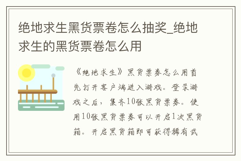 絕地求生黑貨票卷怎么抽獎_絕地求生的黑貨票卷怎么用