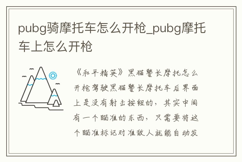 pubg騎摩托車怎么開槍_pubg摩托車上怎么開槍