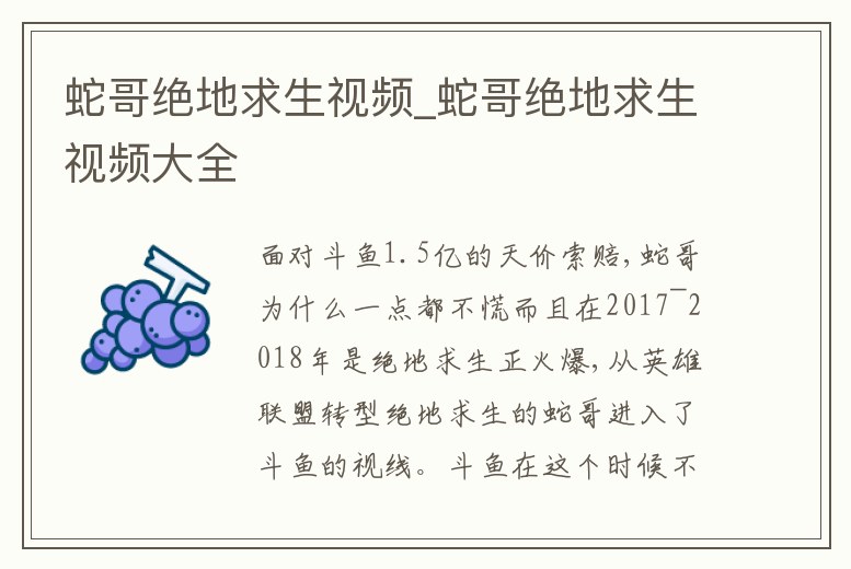 蛇哥絕地求生視頻_蛇哥絕地求生視頻大全