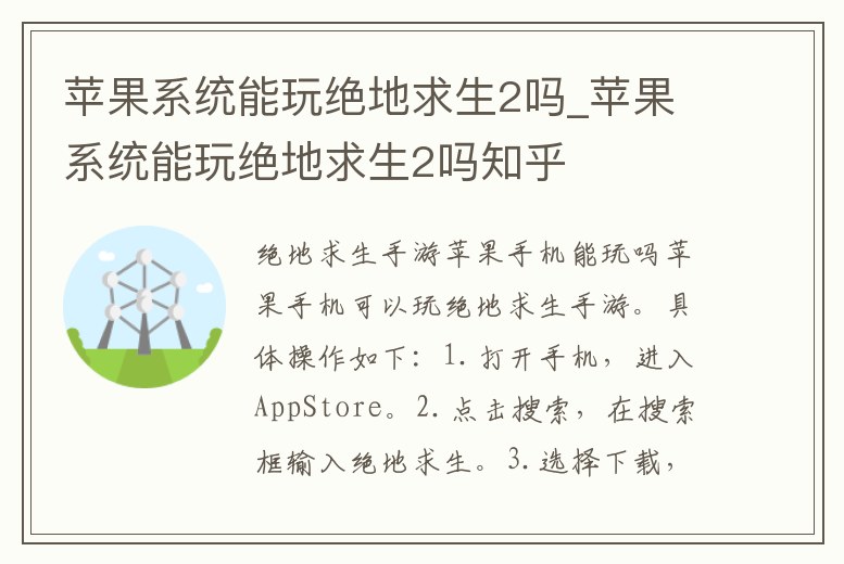 蘋果系統能玩絕地求生2嗎_蘋果系統能玩絕地求生2嗎知乎