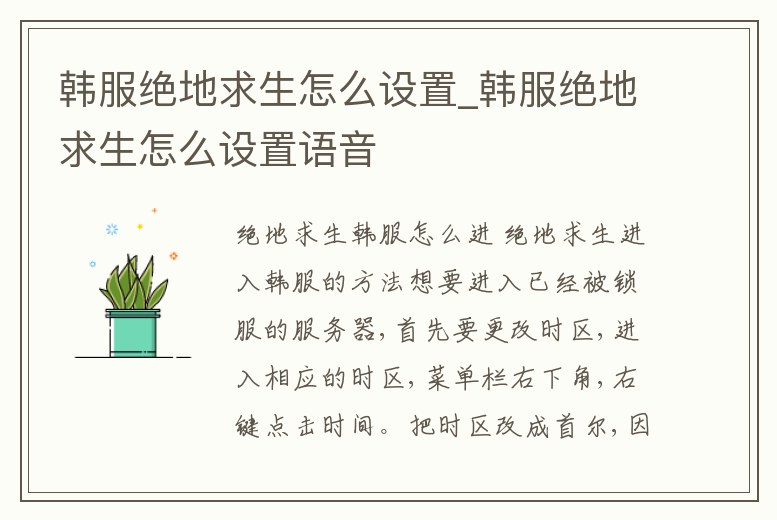 韓服絕地求生怎么設置_韓服絕地求生怎么設置語音