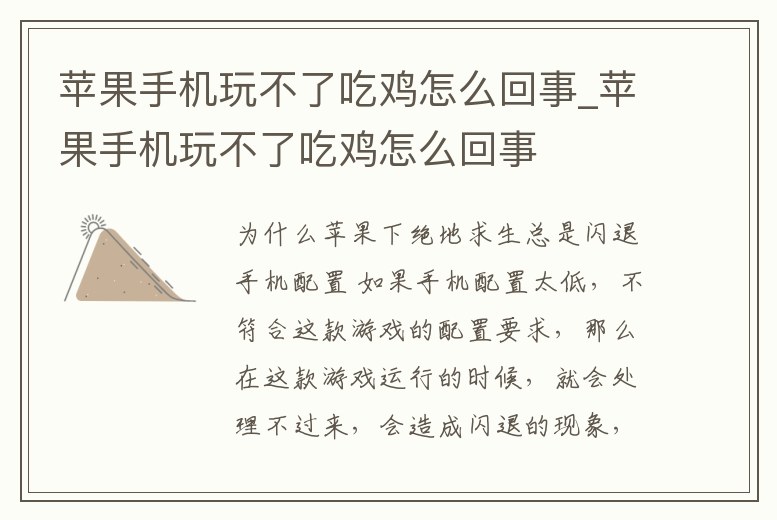 蘋果手機玩不了吃雞怎么回事_蘋果手機玩不了吃雞怎么回事