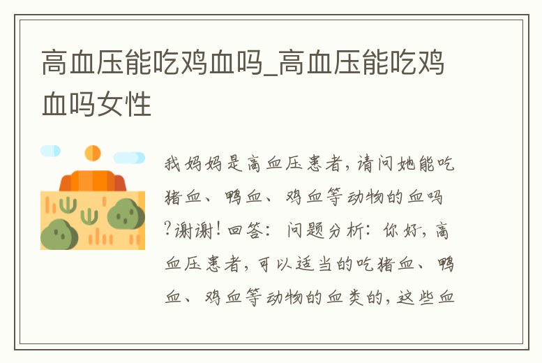 高血壓能吃雞血嗎_高血壓能吃雞血嗎女性