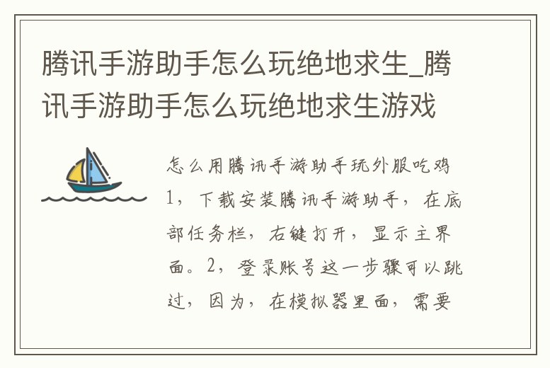 騰訊手游助手怎么玩絕地求生_騰訊手游助手怎么玩絕地求生游戲