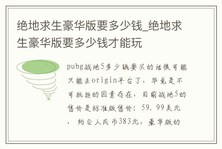 絕地求生豪華版要多少錢_絕地求生豪華版要多少錢才能玩
