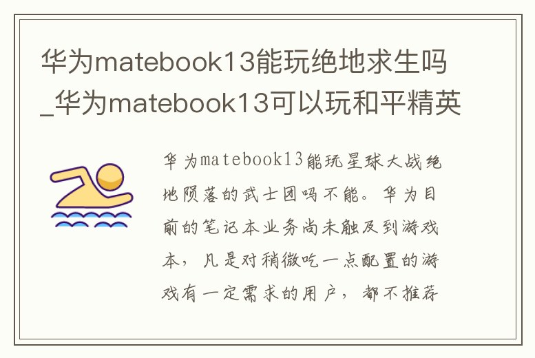 不太好。matebook只是輕薄本,游戲性能最好的也就是帶MX250的機型。MX250是一款低端入門獨顯,玩玩LOL、CF沒問題,同時也能低畫質玩玩一些優化比較好的大型游戲。但是玩吃雞這種在線對抗類的高配置網游,游戲體驗會很差。官方。