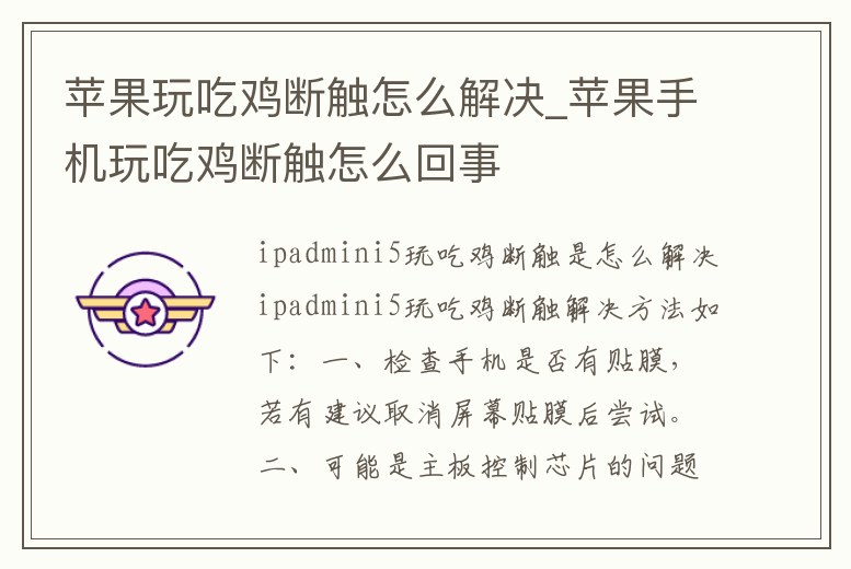 蘋果玩吃雞斷觸怎么解決_蘋果手機玩吃雞斷觸怎么回事