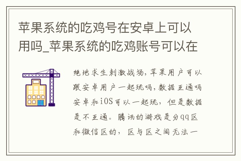 蘋果系統(tǒng)的吃雞號在安卓上可以用嗎_蘋果系統(tǒng)的吃雞賬號可以在華為用嗎