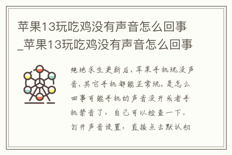 蘋果13玩吃雞沒有聲音怎么回事_蘋果13玩吃雞沒有聲音怎么回事兒