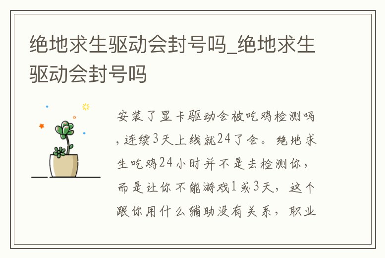 絕地求生驅動會封號嗎_絕地求生驅動會封號嗎