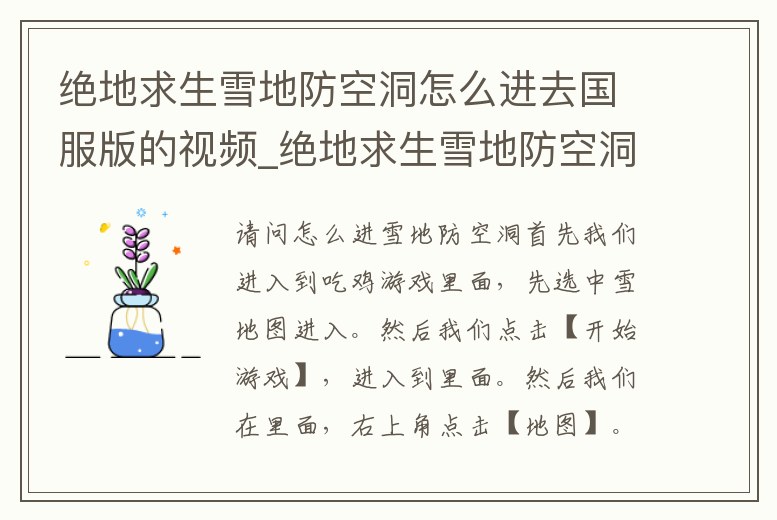 絕地求生雪地防空洞怎么進去國服版的視頻_絕地求生雪地防空洞空投取消了嗎