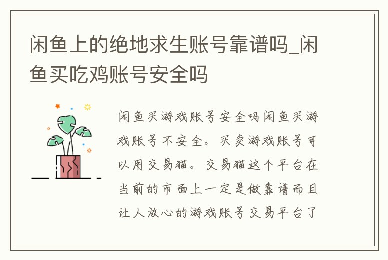 閑魚上的絕地求生賬號靠譜嗎_閑魚買吃雞賬號安全嗎
