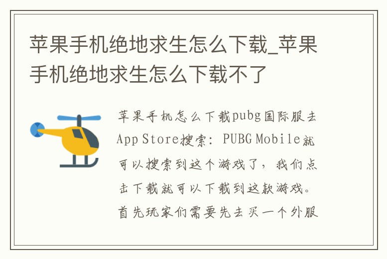 蘋果手機絕地求生怎么下載_蘋果手機絕地求生怎么下載不了