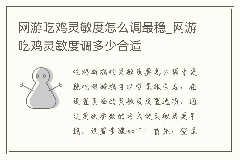 網游吃雞靈敏度怎么調最穩_網游吃雞靈敏度調多少合適