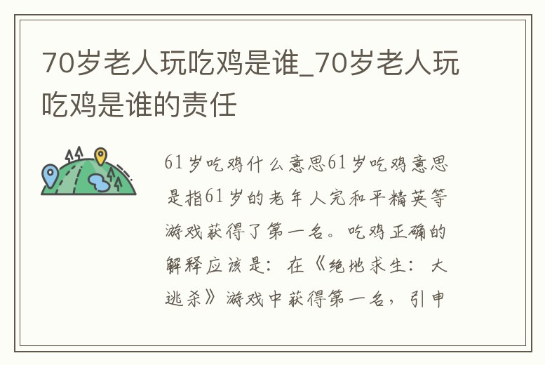 70歲老人玩吃雞是誰_70歲老人玩吃雞是誰的責任