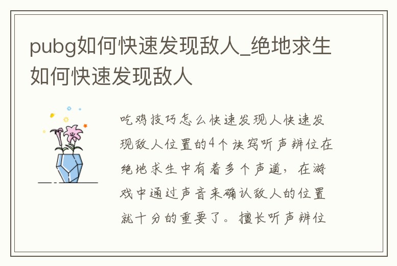 pubg如何快速發現敵人_絕地求生如何快速發現敵人