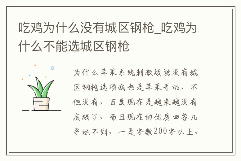 - 吃雞為什么沒有城區(qū)鋼槍_吃雞為什么不能選城區(qū)鋼槍