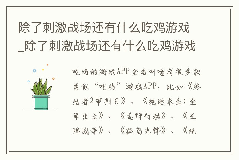 除了刺激戰場還有什么吃雞游戲_除了刺激戰場還有什么吃雞游戲可以玩