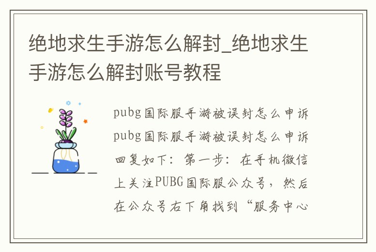 絕地求生手游怎么解封_絕地求生手游怎么解封賬號教程