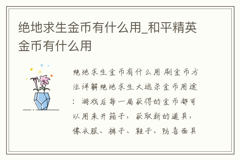 絕地求生金幣有什么用_和平精英金幣有什么用