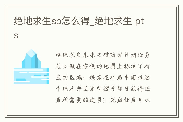 在右側的地圖上標注了對應的區域,玩家在對局中前往這個地方并且進行搜尋即可獲得任務所需要的道具;完成任務可以獲得SP點數,記得先接取任務后再去參與對局。絕地求生未來之役手游在哪玩 目前游戲之開放了國際服,玩家。