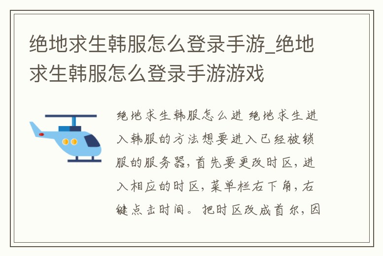 絕地求生韓服怎么登錄手游_絕地求生韓服怎么登錄手游游戲