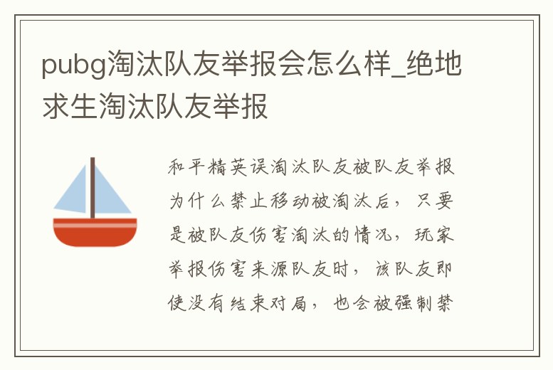 和平精英誤淘汰隊友被隊友舉報為什么禁止移動被淘汰后,只要是被隊友傷害淘汰的情況,玩家舉報傷害來源隊友時,該隊友即使沒有結束對局,也會被強制禁錮在原地無法移動。如果真的是不小心誤傷了隊友,在及時溝通+及時救治的情況下,隊友也會選擇原諒的,但如果你在游戲過。1、和平精英里面被隊友舉報之后會怎么樣被隊友舉報系統不會第一時間立馬反饋,有一個舉報處理時間,基本上快