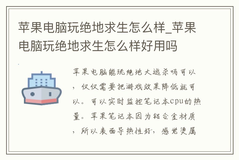 蘋果電腦玩絕地求生怎么樣_蘋果電腦玩絕地求生怎么樣好用嗎
