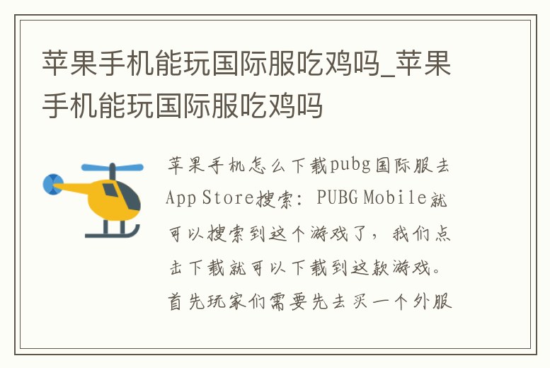 蘋果手機能玩國際服吃雞嗎_蘋果手機能玩國際服吃雞嗎